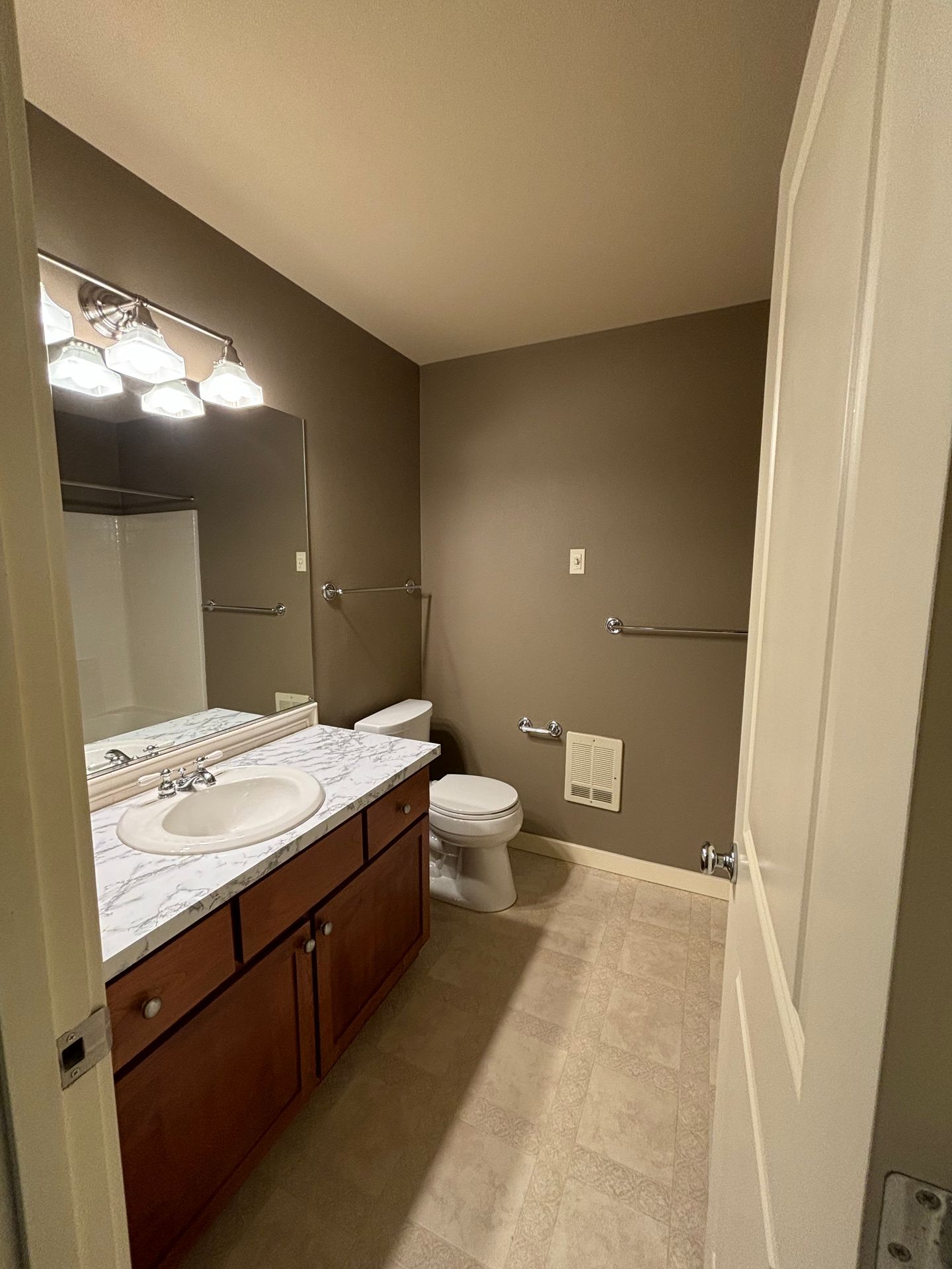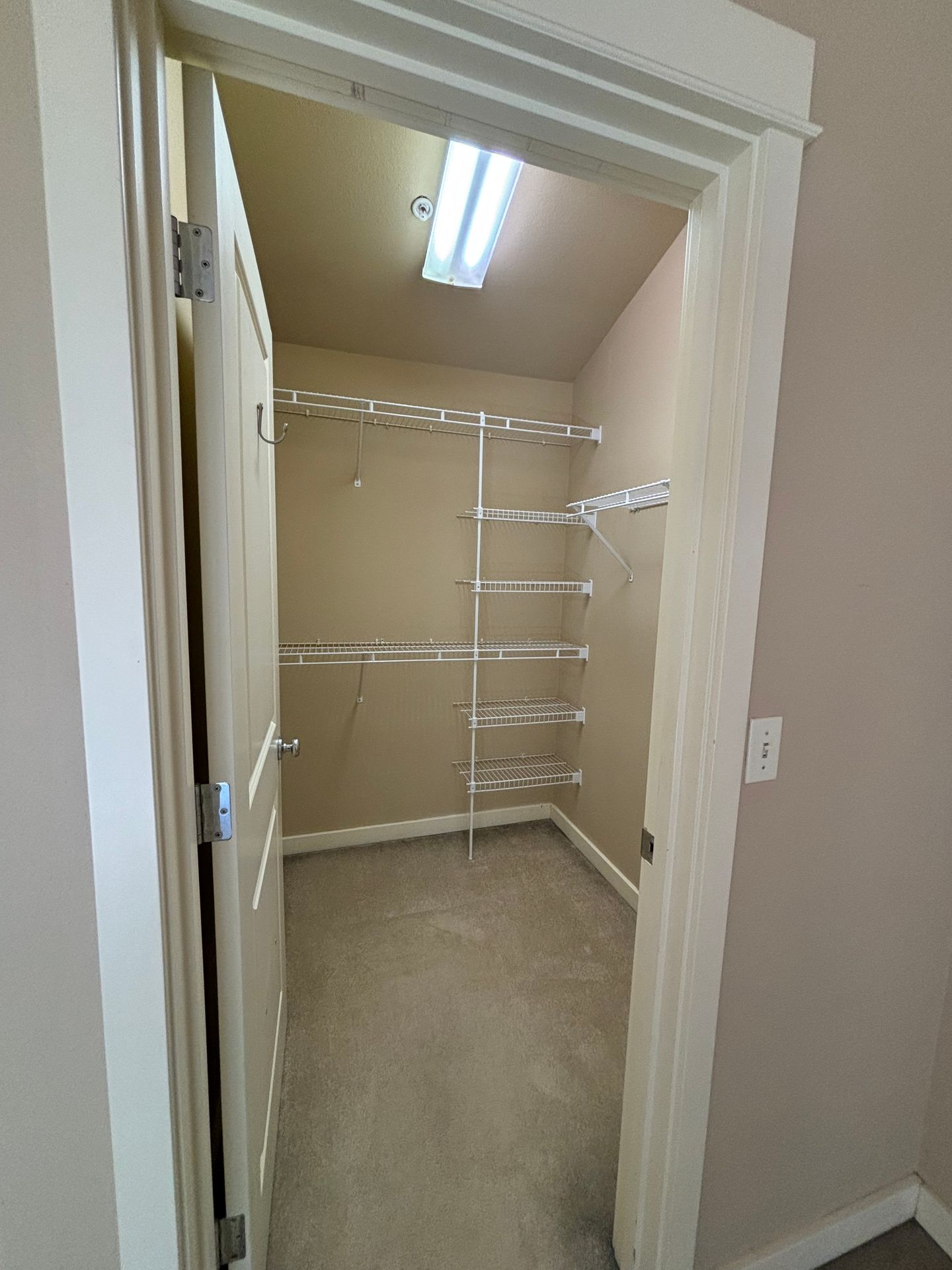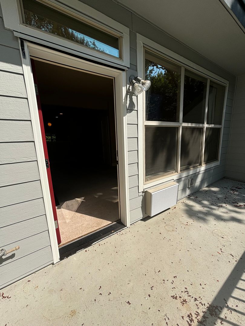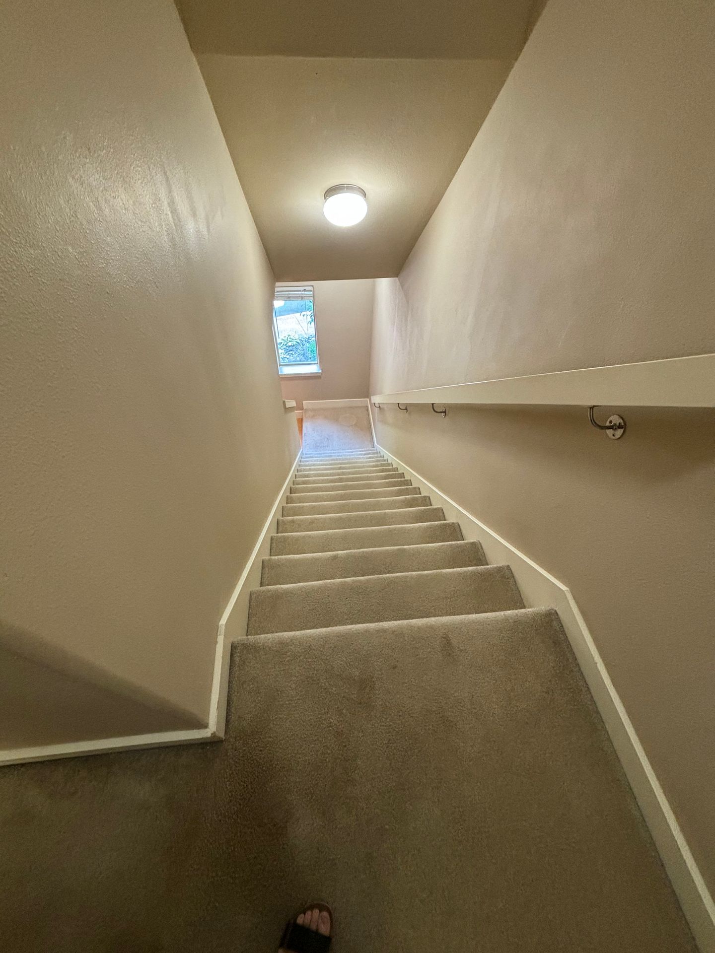 Beautiful three story condominium with a peaceful and private view of the trees out the back windows. 2 bedrooms and 2 1/2 bathrooms with 1453 sq. ft. Gorgeous kitchen with hardwood floors, granite counter tops, and cherry stained cabinets. Stainless steel kitchen appliances (gas) and also includes a washer/dryer set. Large living room with cozy gas fireplace! Formal dining area in living room or use informal dining area and breakfast bar in kitchen. Private balcony deck off the living room looks out to trees. Oversized 2 car tandem parking garage with extra storage area. Additional parking for one car under carport. Walking areas close by as well as park and library. No smoking, no pets.